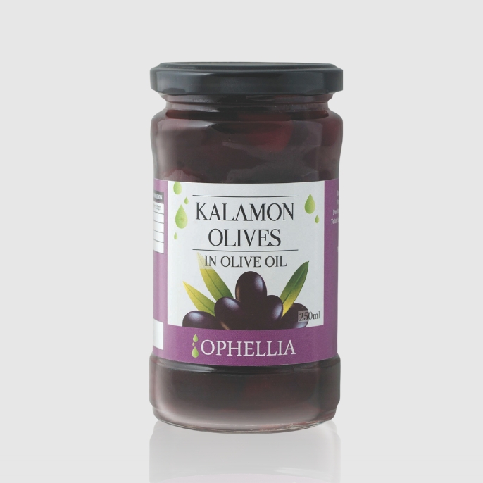 Οι Ophellia Ελιές Καλαμών συλλέγονται προσεκτικά και διατηρούνται σε φυσική άλμη, για να διατηρούν όλο το άρωμα και τη μεστή, φρουτώδη γεύση που χαρακτηρίζει την ποικιλία Καλαμών.