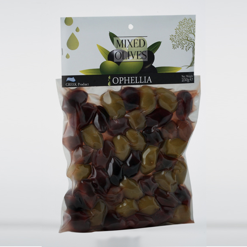 Με τις ανάμεικτες ελληνικές ελιές σε κενό αέρος μπορείτε να δημιουργήσετε νόστιμες σαλάτες, σάντουιτς, πίτες, σνακ και πολλούς άλλους τρόπους για να τις απολαύσετε με την οικογένεια και τους φίλους σας. Με την εγγύηση ποιότητας της Ophellia.